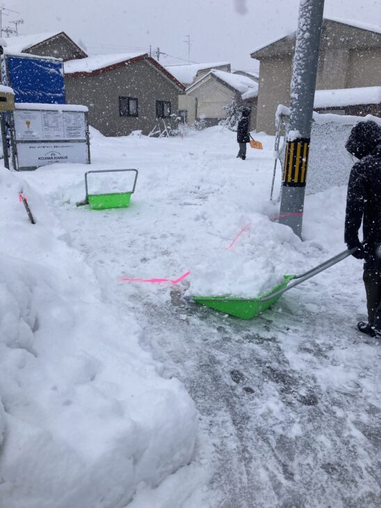 ここから3人で雪かきして