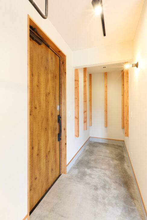 入ってすぐ横に自転車やアウトドアグッズをしまう土間スペース。