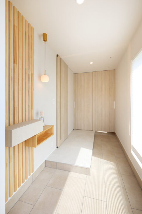 玄関横に広々としたシューズクローゼットがあると、