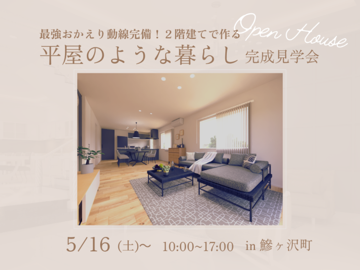 最強おかえり動線完備・2階建てで作る 「平屋のような暮らし」 完成見学会を開催します!